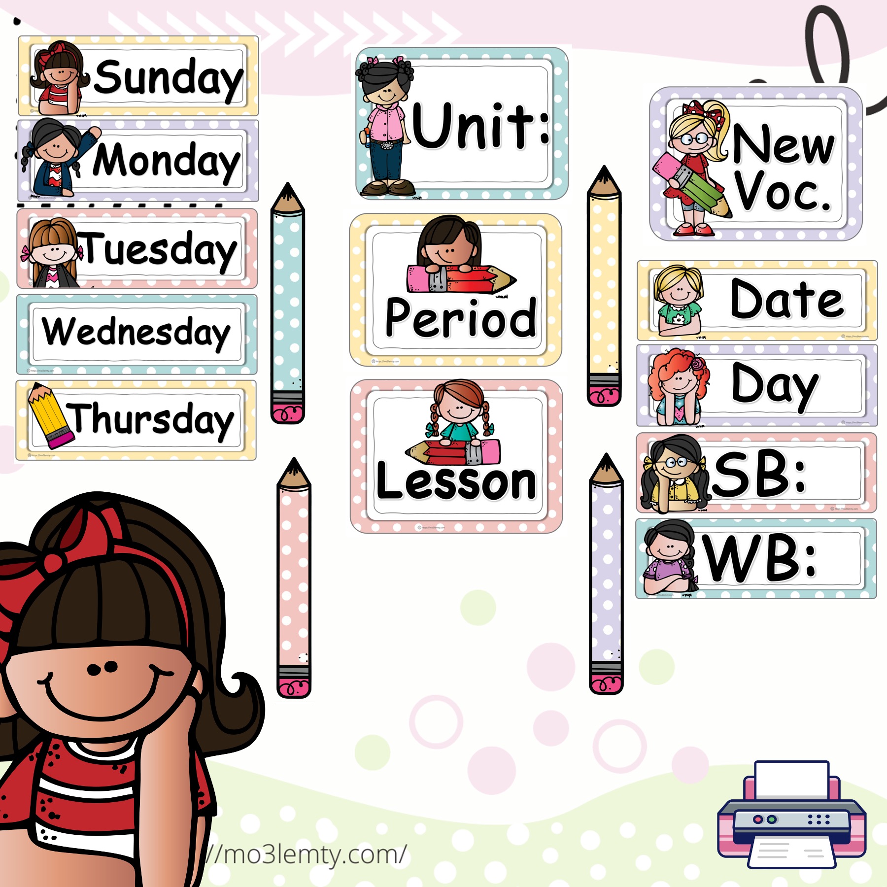 بطاقات السبورة اللغة الانجليزية(معلمتي)-بنات-منتج مطبوع
