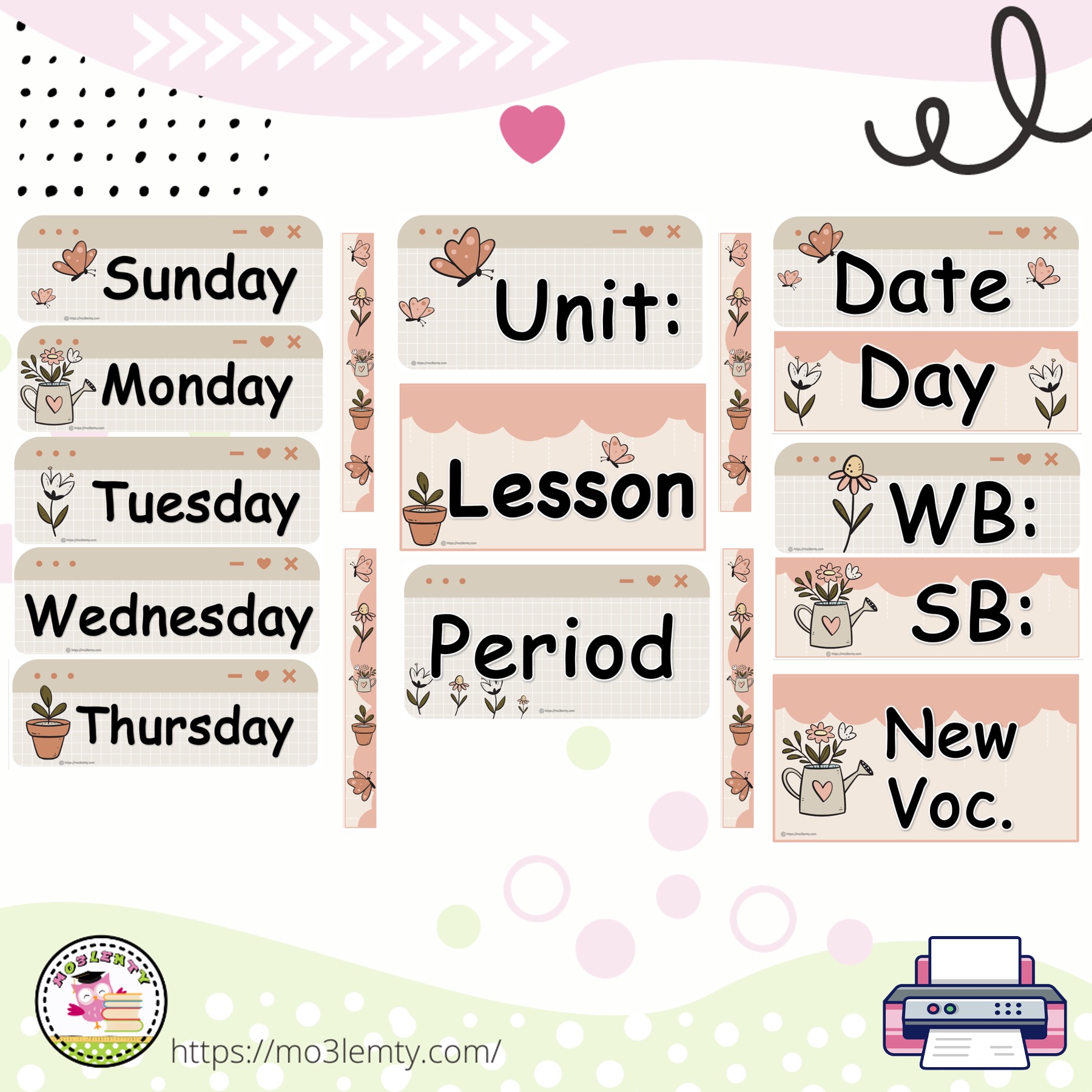 بطاقات السبورة انجليزي (Flora)-منتج مطبوع
