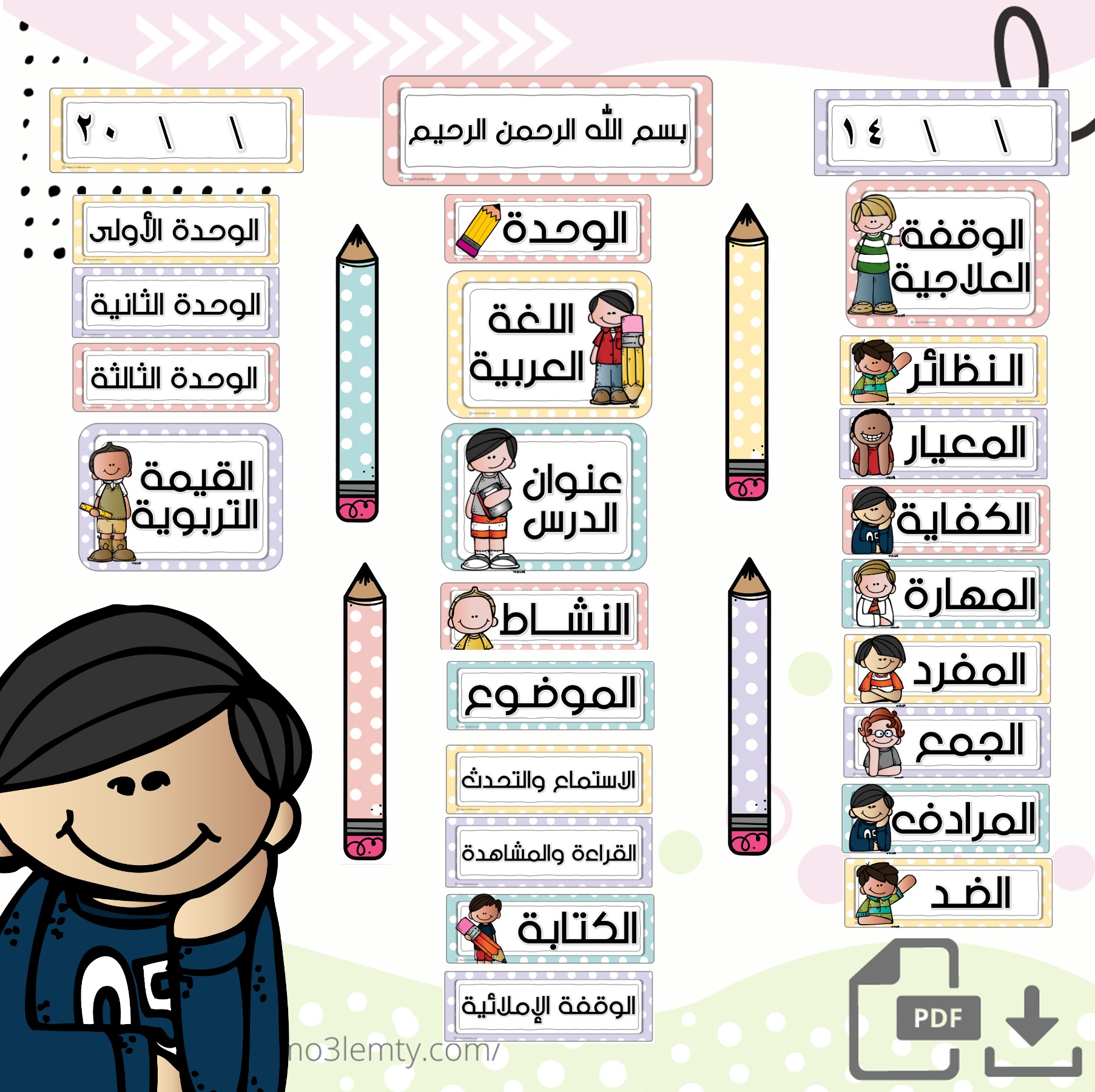 بطاقات السبورة اللغة العربية (معلمتي)-بنين-منتج رقمي